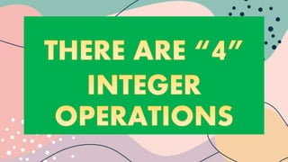 This document discusses integers and provides examples of adding positive and negative integers. It defines an integer as a number that can be positive or negative, including zero, and lists examples of positive and negative integers on a number line. The document also contains repeated sections on rules and examples for finding the sum of integers, and assigns a practice problem for the reader to complete.