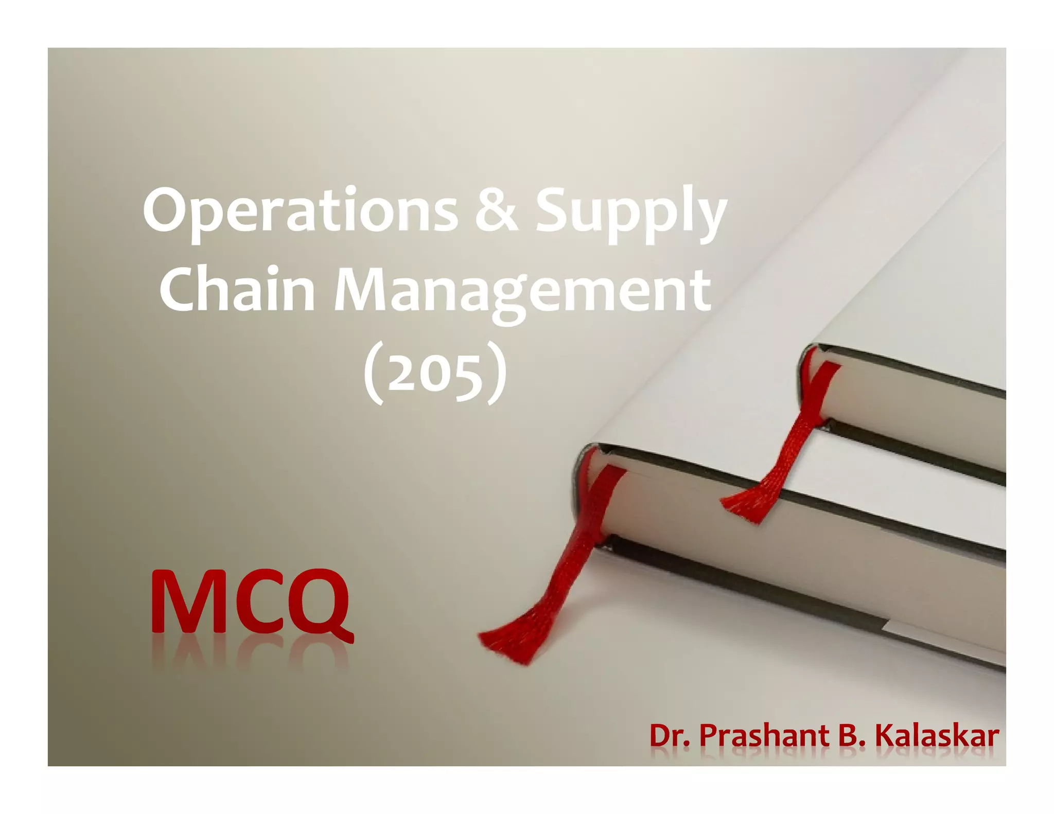 The document consists of a series of questions related to operations and supply chain management, covering various concepts such as quality definitions, supply chain relationships, lean principles, total quality management, and production processes. It includes multiple choice questions designed to assess knowledge on key topics in the field, including logistics, production systems, and quality management. The content suggests a focus on the importance of understanding and optimizing various elements within operations and supply chains.
