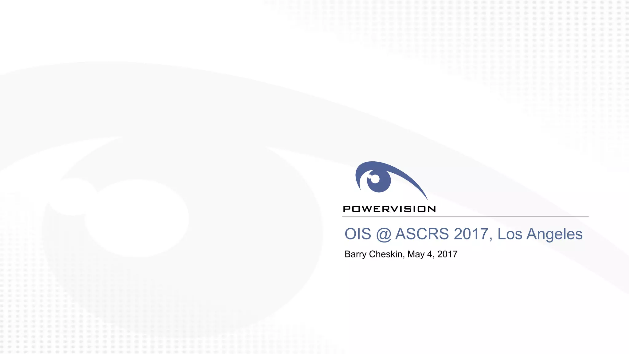 The document discusses an artificial intraocular lens (AIOL) called the FluidVision that mimics the eye's natural accommodative process. It is the first true shape changing, fluid-driven IOL. Early results from a 23 patient pilot study show promising results with a straightforward surgical technique. Bench testing shows the FluidVision provides excellent image quality over a range of powers as it continuously varies between far and near focal points by inflating and deflating the lens using fluid movements. PowerVision is developing additional innovations like a toric version and post-implant adjustment capabilities.