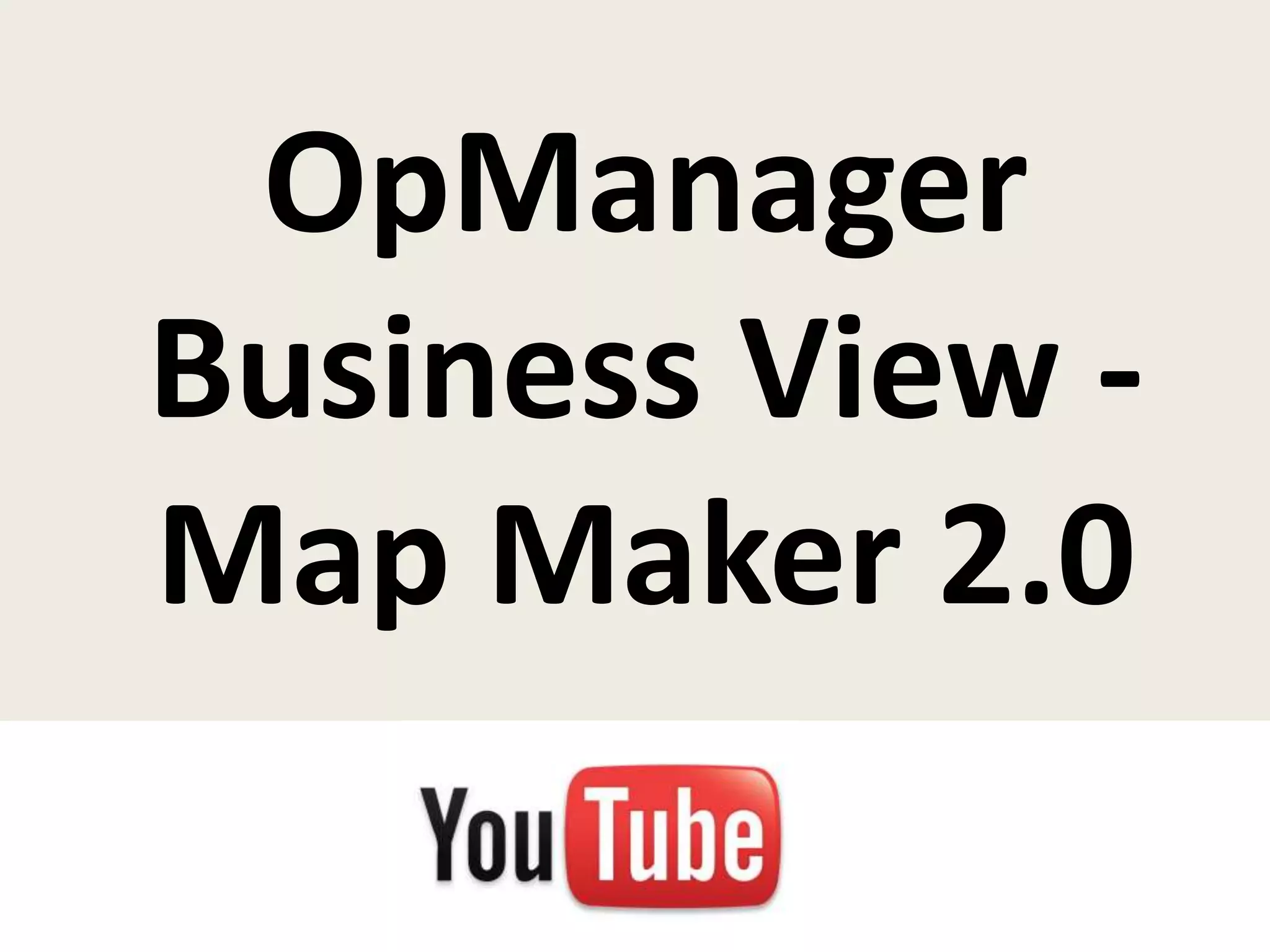 The document discusses the OpManager Business View - Map Maker 2.0. It directs users to a video for further information on the topic. The link provided is http://www.youtube.com/watch?v=k7yvs2fghga.