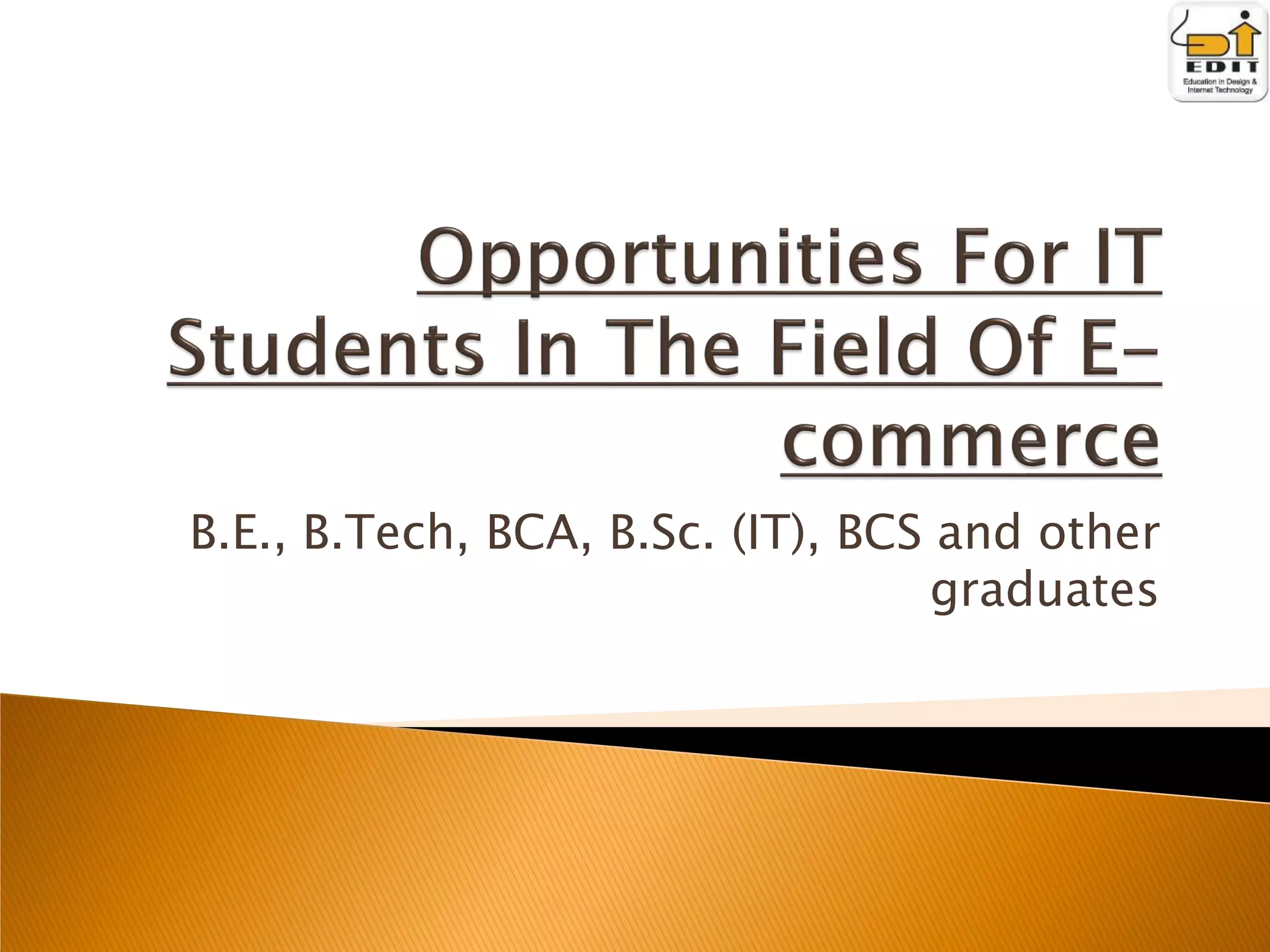 The document discusses opportunities in the e-commerce industry for IT graduates. It summarizes that web designers are needed to create e-commerce sites that work across devices. Training is offered in web design, UI design, and digital marketing at Edit Institute, along with career counseling and scholarships. Students are guaranteed jobs upon completing the program.
