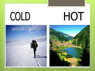This document contrasts a series of opposites including old versus new, long versus short, strong versus weak, young versus old, empty versus full, clean versus dirty, cheap versus expensive, dangerous versus safe, far versus near, high versus low, fast versus slow, and rich versus poor.