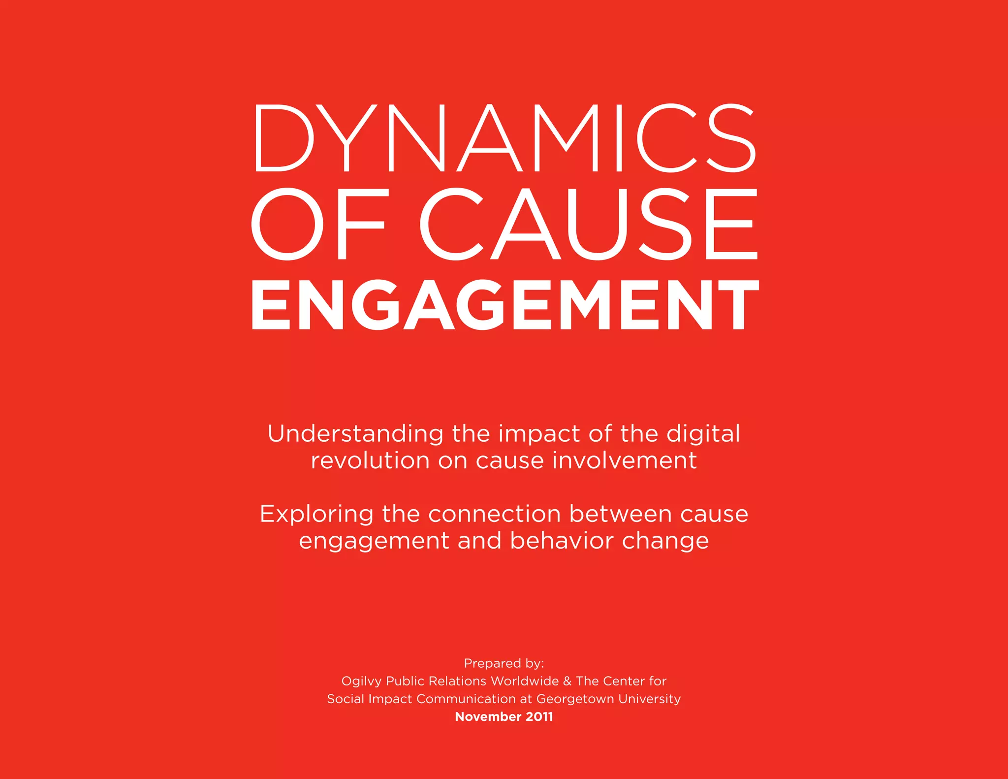 Americans are still more likely to engage with causes through traditional activities like donating, volunteering, and learning more, rather than promotional social media activities. However, social media is seen as valuable for increasing visibility and support of causes. Those who promote causes via social media are often highly engaged across multiple activities, challenging views of "slacktivism." Personal relevance is a major driver for Americans engaging with particular causes. Involvement can also trigger behavior changes among those supporting causes.