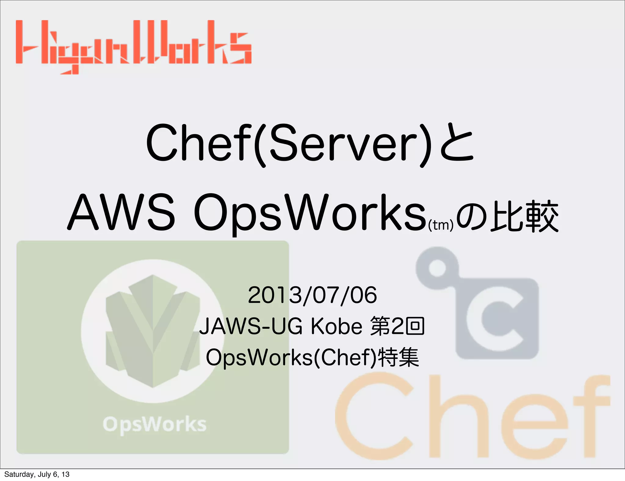 2013/07/06 JAWS-UG Kobe 第2回 OpsWorks(Chef)特集 発表スライド