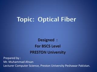 This document provides an overview of optical fibers, including their evolution, structure, working principles, classification, communication systems, advantages/disadvantages, and applications. It discusses how optical fibers guide light using total internal reflection and their use in telecommunications as the backbone for long distance networks. Key points covered include the core-cladding structure of fibers, different types based on modes and refractive index, attenuation factors, and medical applications like endoscopy.