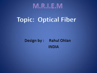 This document provides an overview of optical fibers, including their evolution, structure, working principles, classification, communication systems, advantages and applications. It discusses how optical fibers guide light using total internal reflection. Fibers are classified based on mode (single or multi-mode) and refractive index profile (step or graded). Key advantages are high bandwidth, low attenuation, immunity to EMI, and security. Applications include telecommunications, broadband, medicine, military and more. Optical fibers have become the backbone of long-distance networks since the 1980s due to refinements in manufacturing.