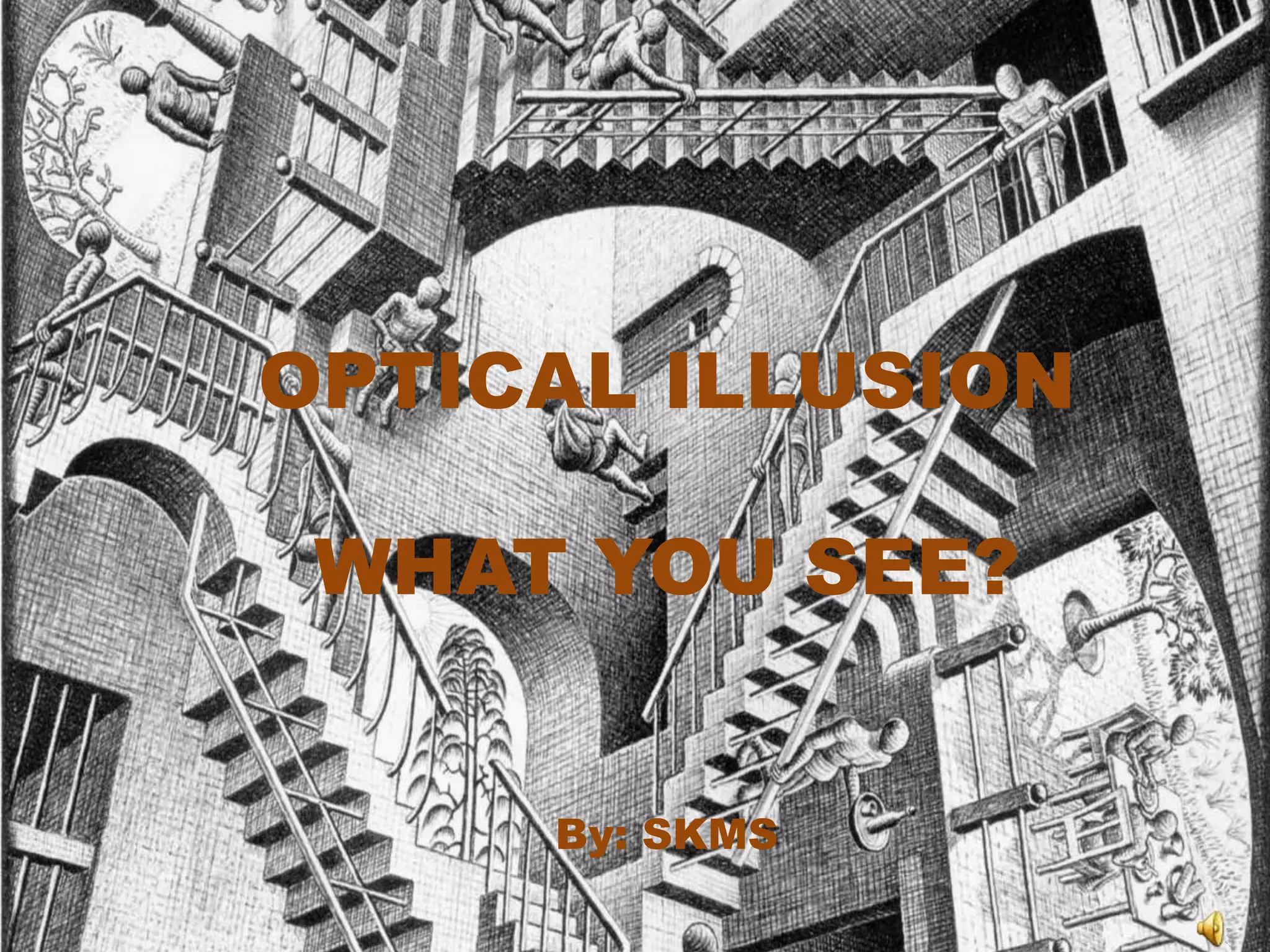 This document presents 15 optical illusions and asks the reader to determine what images they see in each one, such as discerning between a young or old face, a penguin or faces or men standing, and seeing single or multiple faces. It aims to test the reader's perception by presenting ambiguous images that can be interpreted in more than one way.