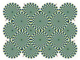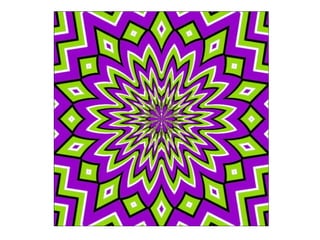 This document contains a collection of optical illusions and visual perception tests. It includes images that play tricks on the eye through anomalies like impossible objects, hidden images, motion illusions, and afterimages. It also contains tests for features like color blindness. The goal is to challenge the viewer's perception and visual processing in various ways.