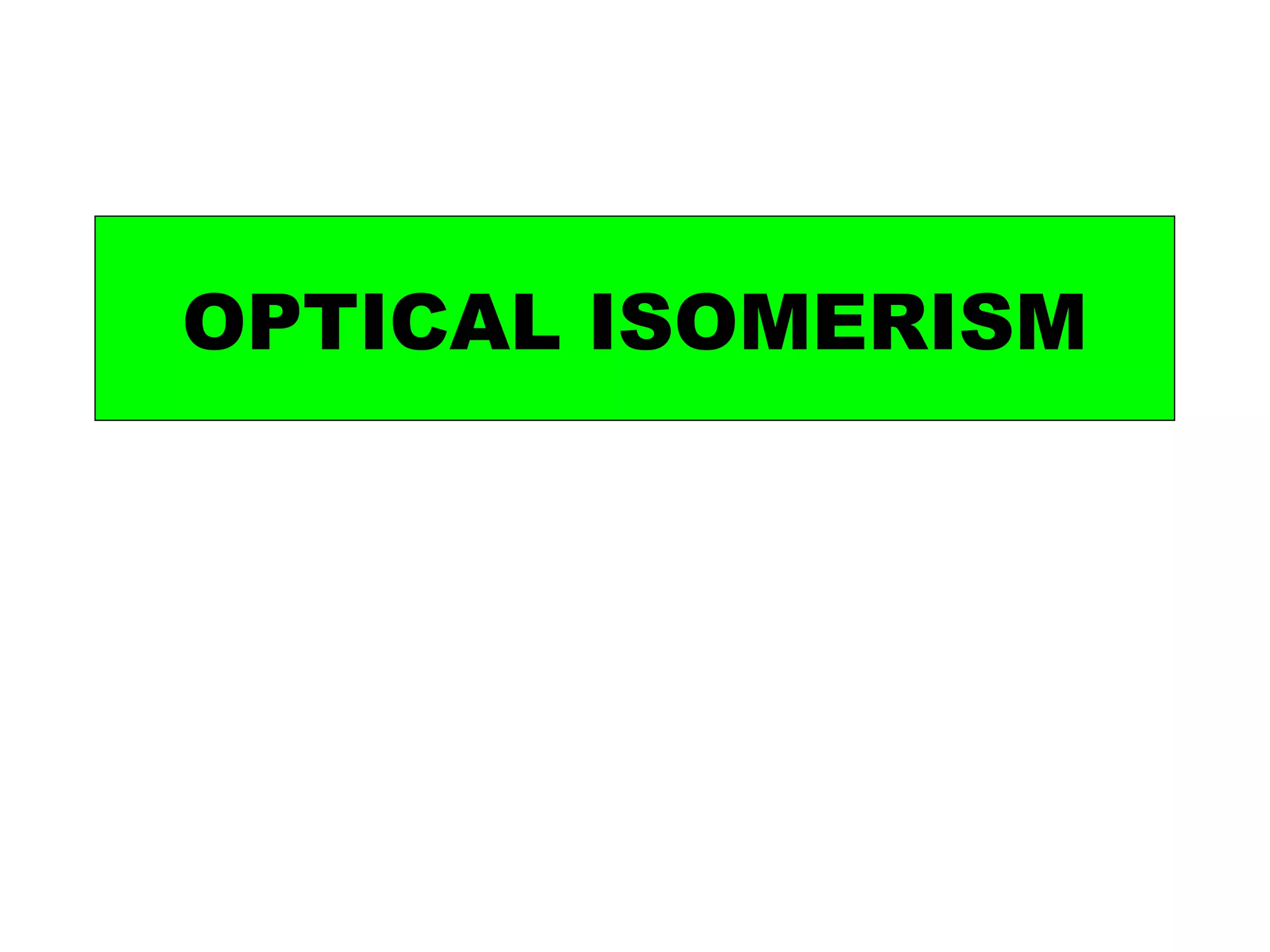 1) Optical isomers, also known as enantiomers, are non-superimposable mirror images of chiral molecules that contain an asymmetric carbon atom bonded to four different groups.