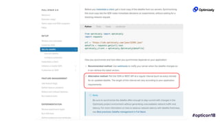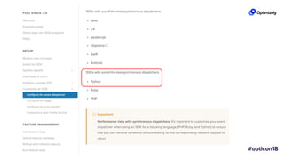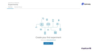 The presentation discussed managing experiments and feature flags across Optimizely and a software application. It began with an experimentation maturity curve showing increasing levels of experimentation from executional to a culture of experimentation. Examples were given of how Optimizely was used at different levels from managing datafiles to consolidating projects and increasing automated testing. Takeaways included passing datafiles between front-end and back-end for performance, caching datafiles in memcache, and improving quality through easy user testing and automated tests.