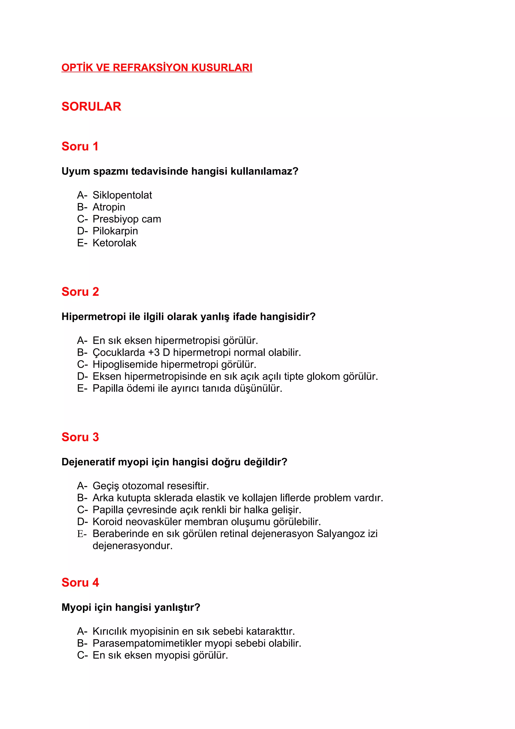 B- Çocuklarda +3 D hipermetropi normal olabilir.