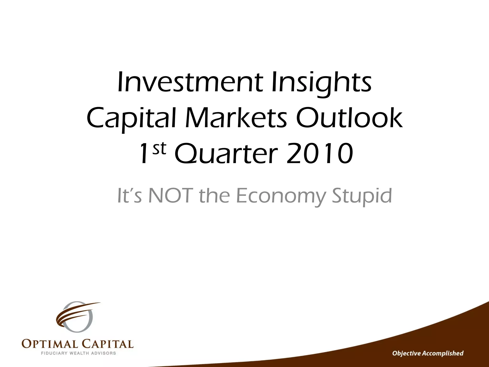 - The document provides an investment outlook and commentary for the 1st quarter of 2010. It discusses various factors impacting the capital markets, including the state of the economy, the equity and bond markets, and risks related to the US dollar and developing economies.