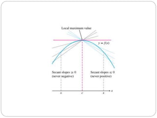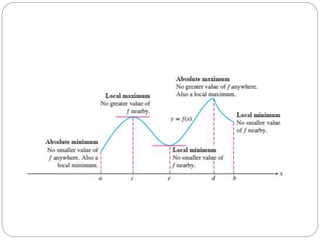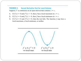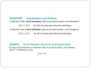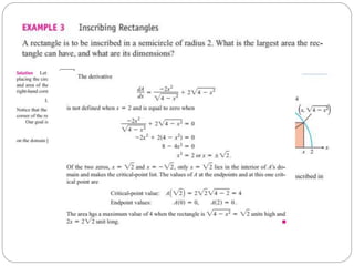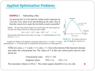 This document discusses applications of derivatives, specifically finding extreme values of functions. It begins by introducing the topic of finding extreme values and encourages the reader to work through examples themselves. It closes by thanking the reader and inviting any questions or comments.