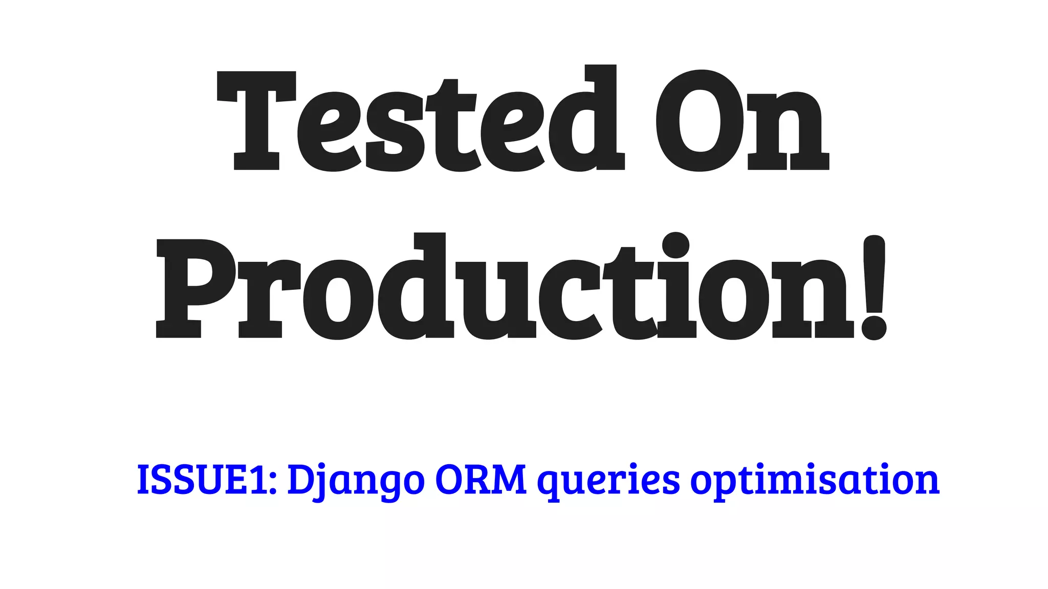 The document discusses various techniques for optimizing Django ORM queries to improve performance, including: