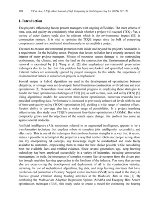 In order to address optimization problems, artificial intelligence (AI) is employed in the construction industry, which aids in the growth and popularization of AI. This study utilizes a Hybrid algorithm called Adaptive Selection Slime Mold Algorithm (ASSMA), which combines the Tournament Selection (TS) and Slime Mould Algorithm (SMA) to address the four-factor optimization problem in projects. This combination will improve the original algorithm's performance, speed up result finding and achieve good convergence via Pareto Front. Hence, efficient resource management must be comprehended in order to optimize the time, cost, quality and environmental impact trade-off (TCQE). Case studies are used to illustrate the capabilities of the new model, and ASSMA results are compared to those of the data envelopment analysis (DEA) method used by the previous researcher. To improve the suggested model's superiority and effectiveness, it is compared to the multiple-target swarm algorithm (MOPSO), multi-objective artificial bee colony (MOABC) and non-dominant sort genetic algorithm (NSGA-II). Based on the overall results, it is clear that the ASSMA model illustrates diversification and offers a robust and convincing optimal solution for readers to understand the potential of the proposed model.