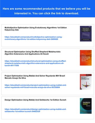 Optimization Using Evolutionary Algorithms And Metaheuristics Applications In Engineering 1st Edition Kaushik Kumar