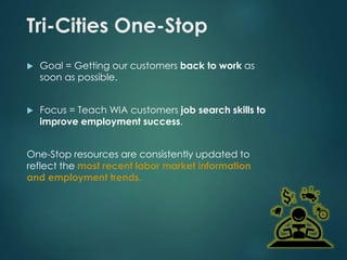 The Tri-Cities One-Stop Career Center offers resources and workshops to assist job seekers in Newark and Fremont, CA, focusing on skills like job search, resume writing, and interview preparation. They provide access to labor market information and emphasize training in high-growth industries such as advanced manufacturing and information technology. Participants can engage in various self-access and structured programs to improve their job search strategies and succeed in the current job market.