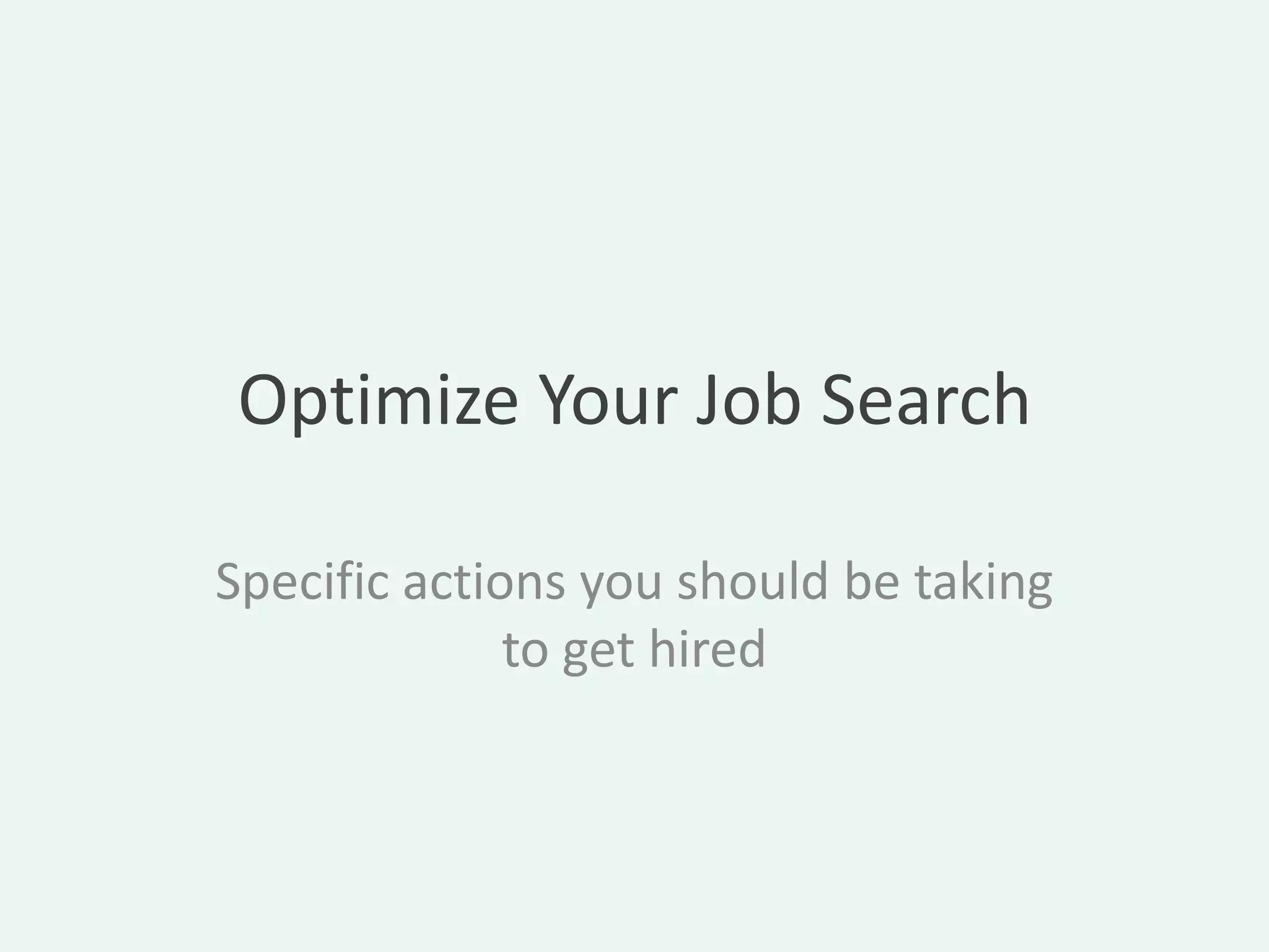 The document outlines strategies for optimizing the job search and hiring process, emphasizing the importance of tailoring resumes to beat applicant tracking systems (ATS) and effectively utilizing LinkedIn for networking. It highlights key elements of interviews, including preparation for behavioral questions and effective communication techniques, as well as the significance of follow-up and negotiation skills post-offer. Overall, it serves as a comprehensive guide for job seekers to enhance their chances of securing employment.