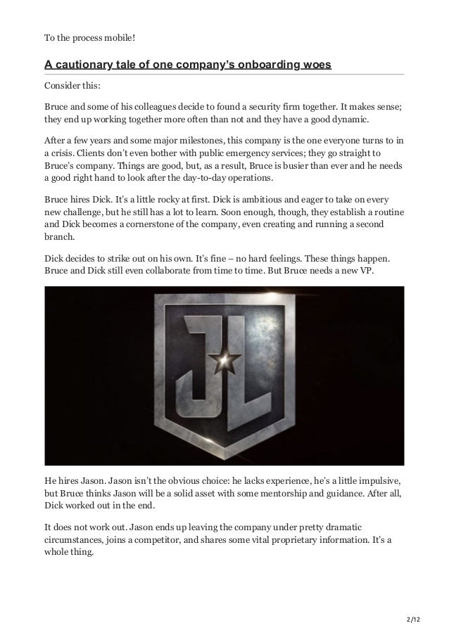 The document emphasizes the importance of a structured onboarding process for new hires, illustrating challenges faced by a company founder named Bruce when hiring and integrating his employees. It provides practical tips for effective onboarding, including pre-onboarding preparation, standardization for consistency, open communication, and mentorship. The ultimate message is that a solid onboarding process is crucial to maximize employee potential and reduce turnover, thus benefiting the company as a whole.