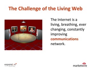 The document is a webinar presentation on optimizing online press releases, outlining the evolving nature of the internet, the importance of content, and various styles of press releases. It emphasizes the significance of SEO, keyword optimization, and writing compelling content to attract journalists and editors. Additionally, it discusses the use of social media and multimedia in press releases to enhance distribution and engagement.