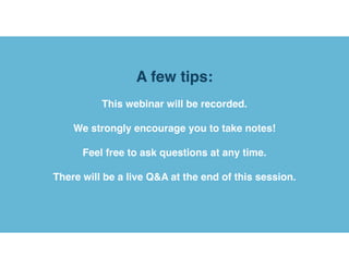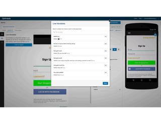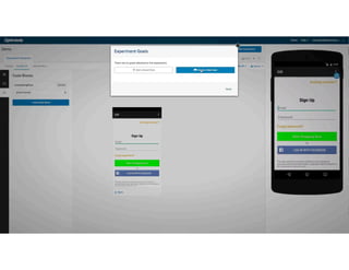 This webinar covered how to conduct A/B testing on mobile apps to address challenges like high user drop-off rates. It discussed setting up mobile experiments in Optimizely by making variations, setting audiences and traffic allocation, goals, and testing. Integrating A/B testing into the development process was also covered, with best practices like planning tests in sprints and using phased rollouts. The webinar aimed to explain how to set up and analyze mobile experiments to validate new features and improve key metrics.