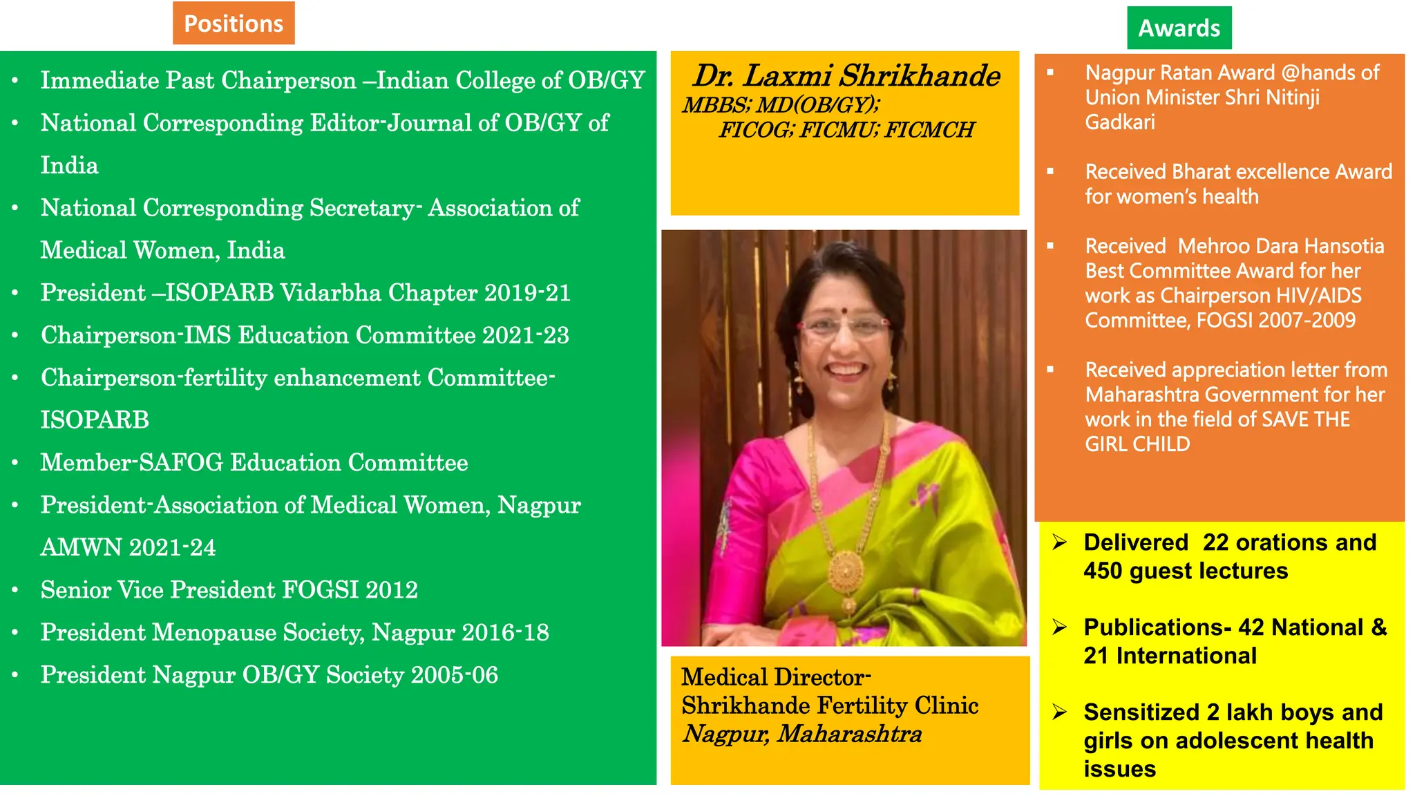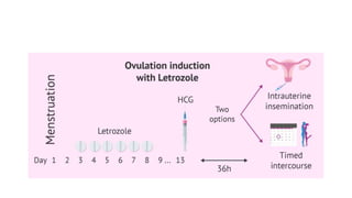 Dr. Laxmi Shrikhande is a prominent medical professional in obstetrics and gynecology, recognized for her leadership roles and numerous awards including the Nagpur Ratan Award and the Bharat Excellence Award. The document discusses the clinical approach to ovulation induction and highlights the causes of anovulation, such as polycystic ovary syndrome and primary ovarian insufficiency, along with the use of clomiphene citrate as a treatment. It also outlines patient selection criteria, monitoring processes, and expected outcomes of ovulation induction treatments.