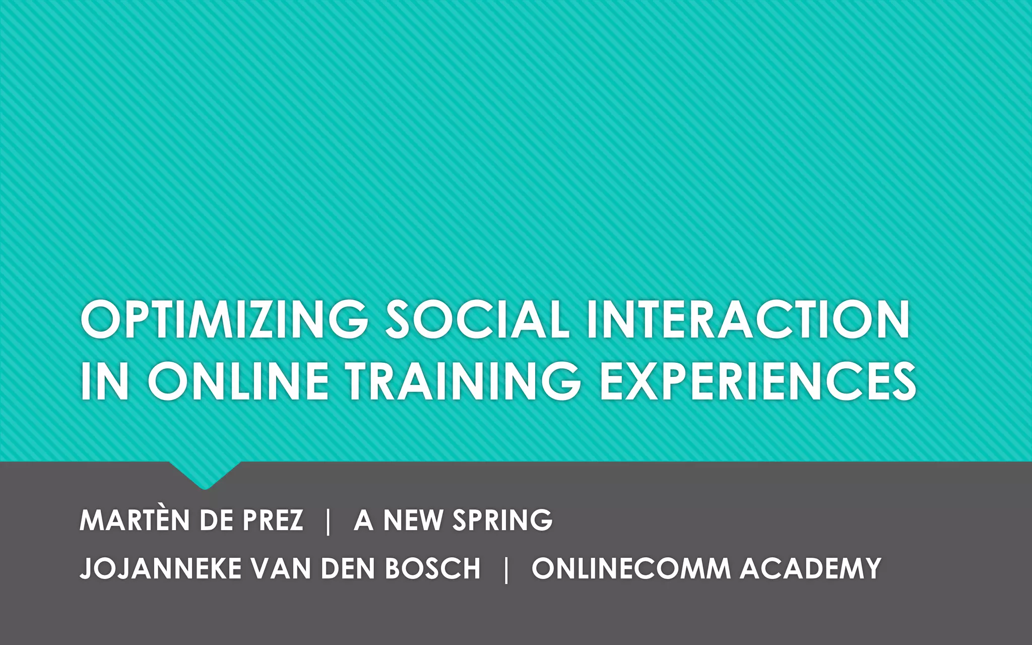 The document discusses optimizing social interaction in online training experiences, emphasizing the importance of integrating open social tools and collaborative learning. It introduces the S.C.A.R.F. model and practical strategies for enhancing engagement, such as real-time collaboration and blended learning approaches. Additionally, it highlights the need for a secure online learning environment and encourages proactive participation among learners.