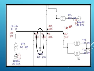 This document summarizes the results of an optimal design study for the Nablus electricity network in Palestine. It analyzes the network's performance under normal and altered conditions, including increasing the voltage level from 6.6kV to 11kV. Across conditions, under voltages and low power factors were observed on some buses. Increasing the voltage level and adding capacitors improved voltages and power factors. An industrial region was proposed that would connect at 33kV and require a 16.8MVA transformer. In conclusion, the improvements led to a more efficient and stable electricity network.