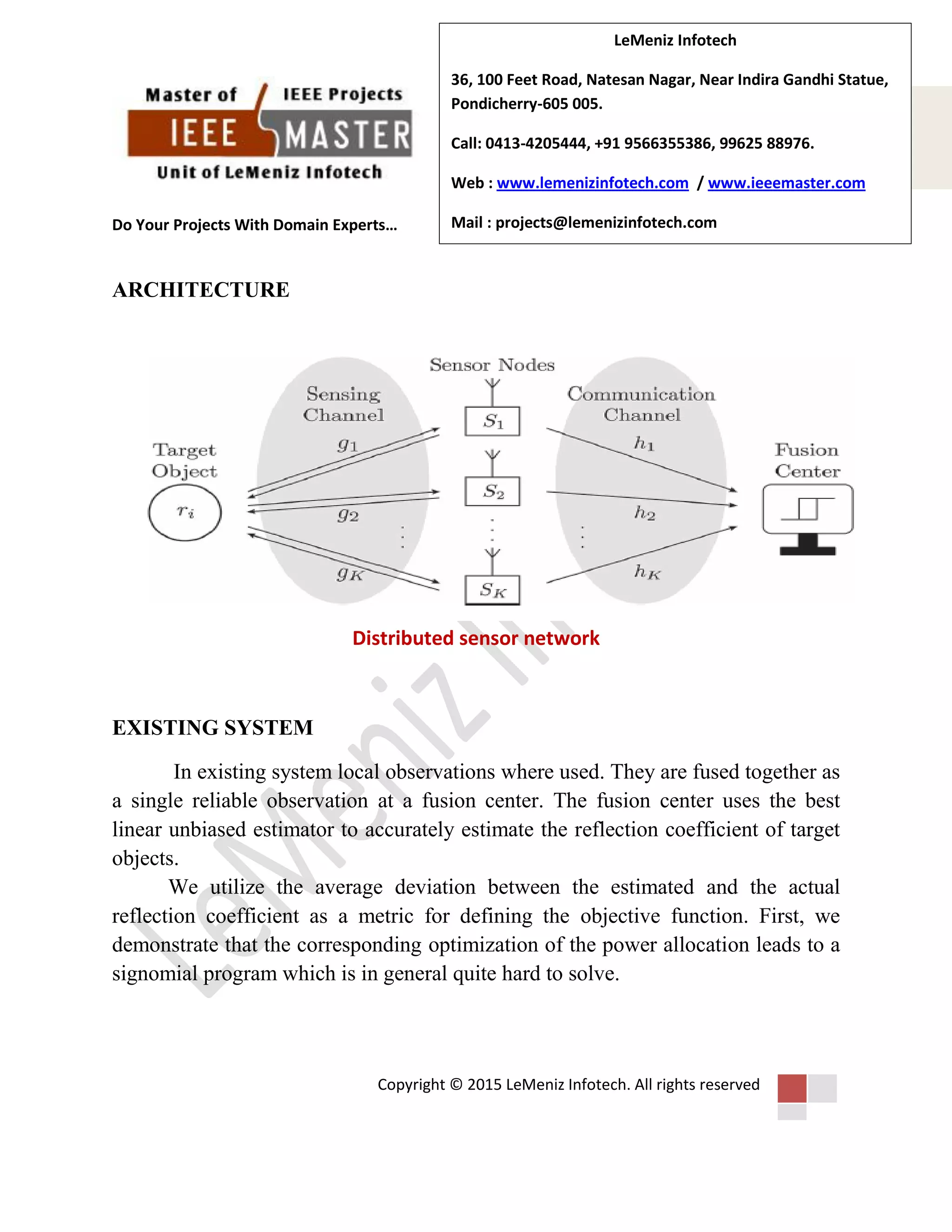 The document discusses optimal power allocation in distributed sensor networks for target object classification, where local observations are combined at a fusion center using the best linear unbiased estimator. It highlights the challenges of solving the power allocation as a signomial program but presents an analytical approach to optimization with a closed-form solution. The proposed system outperforms existing methods by improving reliability in observations and overall system performance while addressing power consumption constraints.