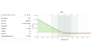 This document discusses several option strategies including bull call spreads, long puts, and short strangles. It provides details on the proficiency level required, outlook or directionality, risk and reward profiles, and example calculations for each strategy. Breakeven points, maximum profit, and maximum loss are specified where applicable. The strategies discussed range from novice to intermediate skill levels and can be used to take bullish, bearish or neutral positions depending on market outlook.