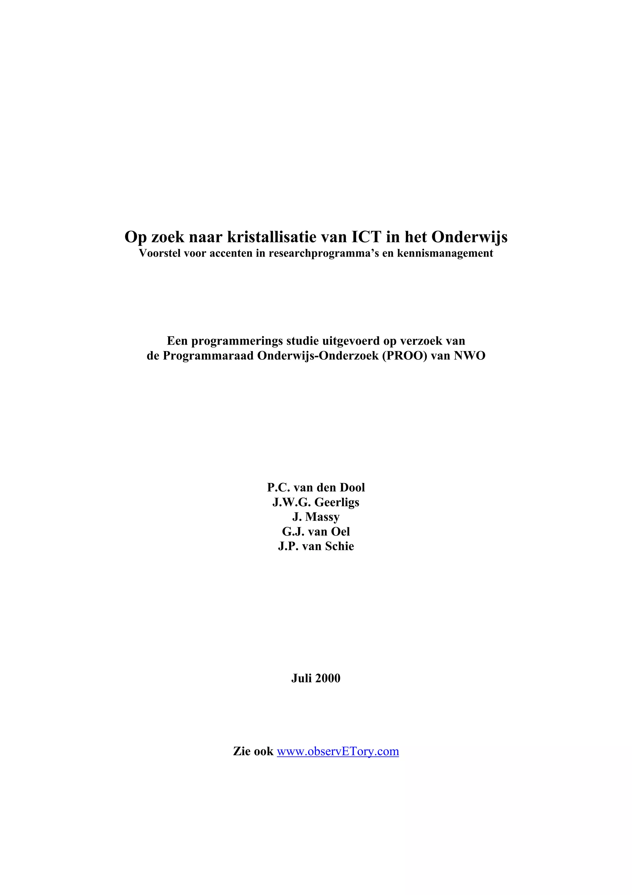 veelvlak”. Gelet op de snelle ontwikkelingen op het terrein van ICT en onderwijs had de PROO