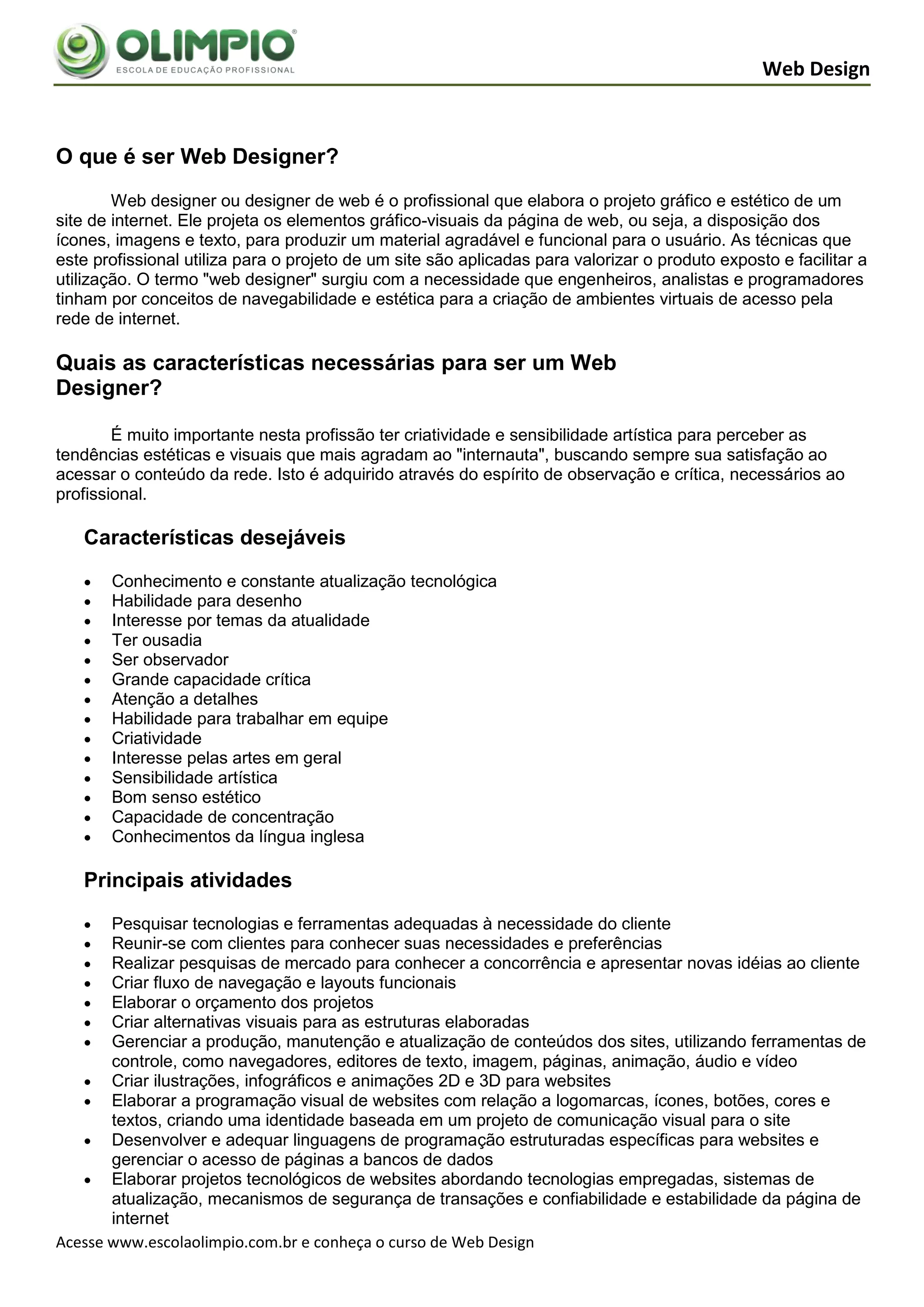 Acesse www.escolaolimpio.com.bre conheça o curso de Web Design