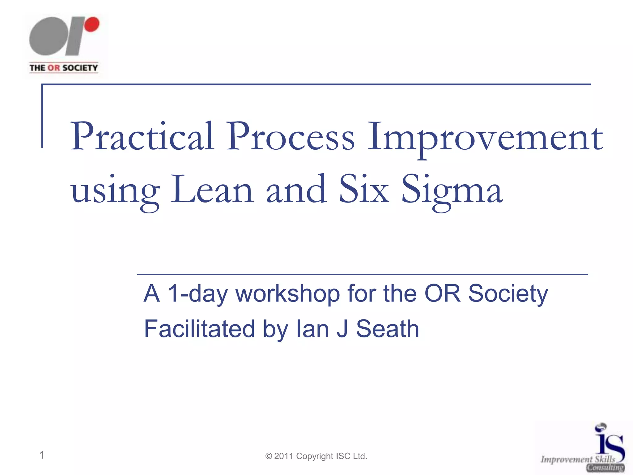 The document describes a 1-day workshop on using Lean and Six Sigma approaches for process improvement. It will teach participants how Lean and Six Sigma differ but can be used together, how to define and set up a process improvement project, and how to map, measure, analyze, improve and manage business processes. Tools from both Lean, like value stream mapping, and Six Sigma, like statistical process control, will be covered.