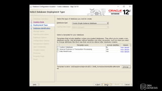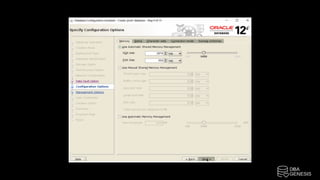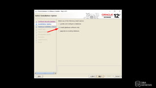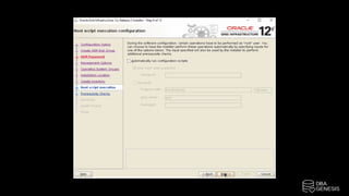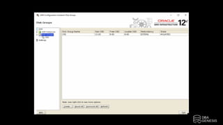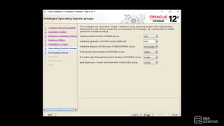 The document outlines the installation process of Oracle 12cR2 on Linux with ASM, detailing steps such as connecting to an OEL server, configuring ASM disk groups, and installing Oracle software. It includes instructions for creating partitions, configuring user profiles, and setting up the database using DBCA. The steps also highlight the need to run specific scripts as the root user and ensure proper user configurations for successful installation.