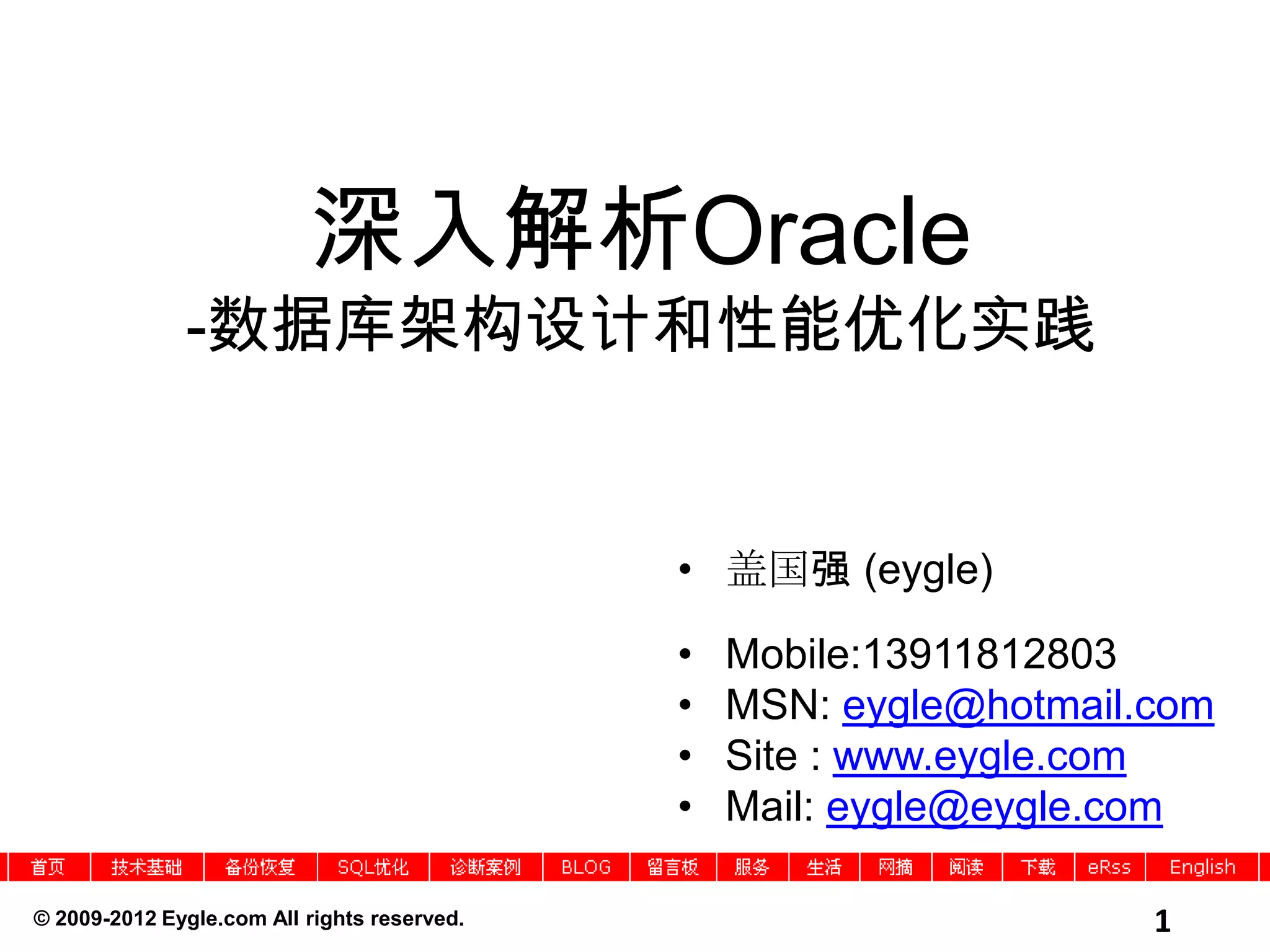 本文深入探讨了Oracle数据库架构设计与性能优化的实践经验,包含了数据架构的演进及最佳实践。文章强调了数据库在企业中的核心作用和管理员的职责演变,提出通过专业咨询和优化开发流程来提升性能和稳定性。最后,提出了以用户体验为中心的数据管理方法和线性可扩展的系统设计理念。