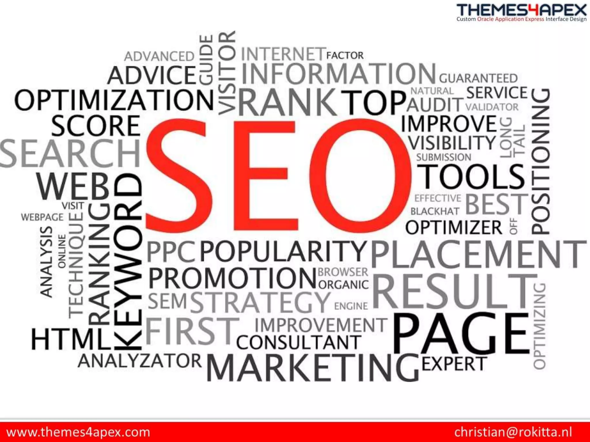 The document discusses the importance of URLs, particularly in the context of Oracle Application Express (APEX), emphasizing how to optimize them for better search engine ranking and human readability. It covers the structure and syntax of APEX URLs, the transformation of URL parameters, and the role of sitemaps and robots.txt in facilitating web crawling. Lastly, it provides practical examples and recommendations for creating effective URLs in APEX applications.
