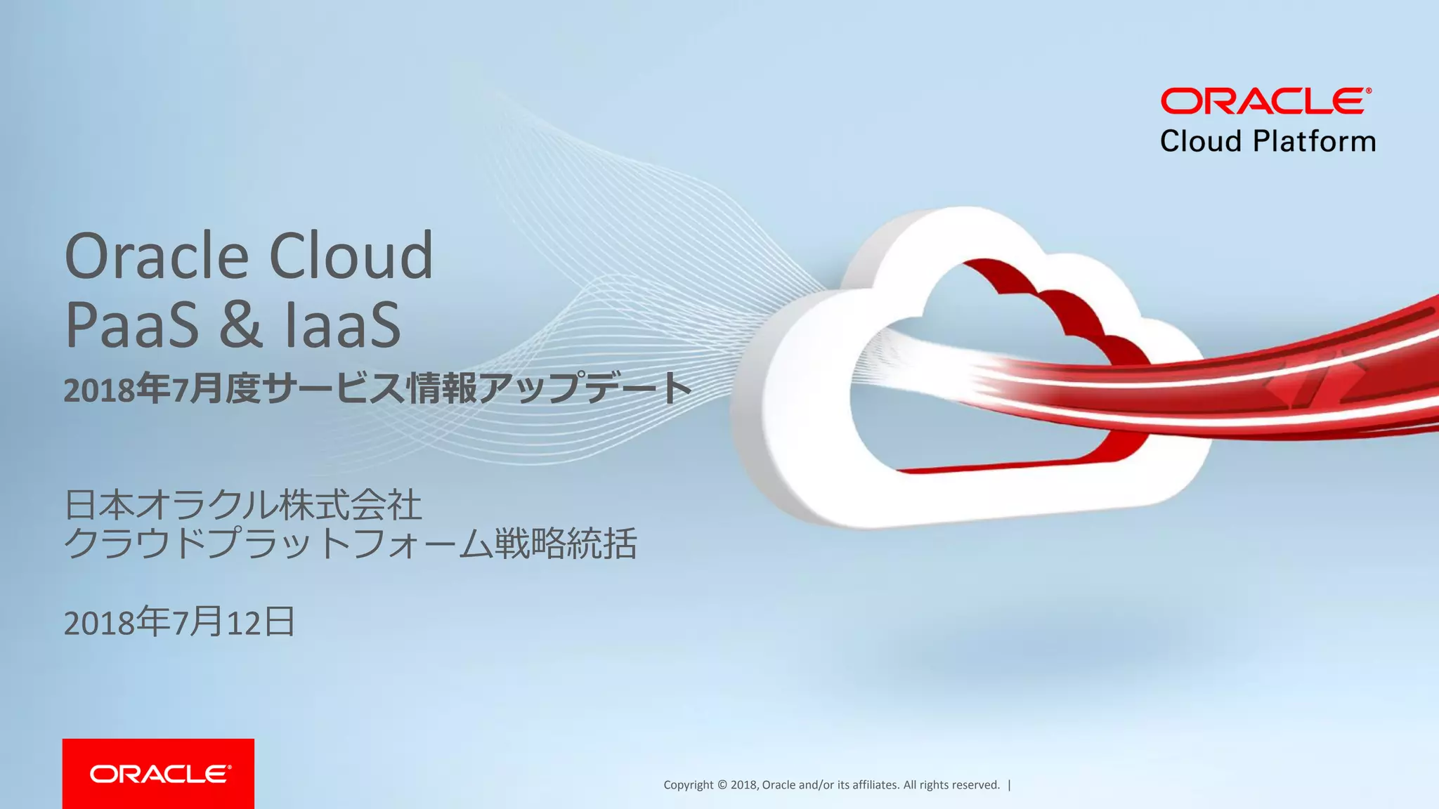 Oracle and/or its affiliates. All rights reserved. | Oracle Cloud PaaS & IaaS 日本オラクル株式会社 クラウドプラットフォーム戦略統括 2018年7月12日 2018年7月度サービス情報アップデート