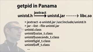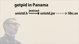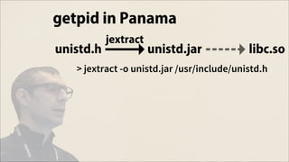 This short document discusses getting the process ID (PID) in Panama. It mentions including the unistd.h header file and linking with the unistd.jar library to use the getpid function, as well as potentially needing the libc.so shared object for it to work properly.