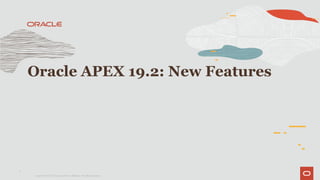 Oracle APEX 19.2 introduces several enhancements including faceted search for improved data filtering, enhanced popup lists of values, and a new team development feature for streamlined collaboration. It supports REST-enabled interactive grids and offers improvements to the SQL workshop and universal theme. Additional updates include upgrades to the Oracle JET and jQuery libraries, allowing for a modernized user experience.