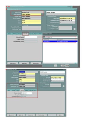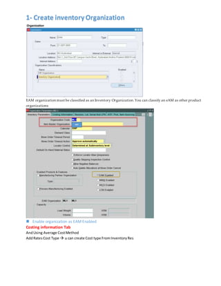 - Creating and implementing maintenance procedures for both assets and rebuildable inventory items.