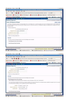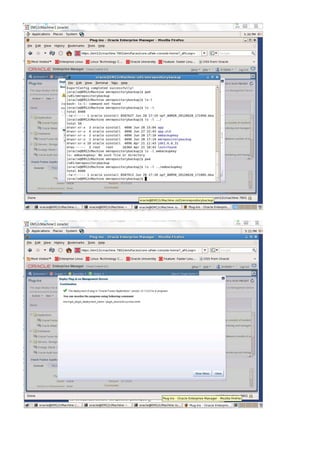 The document provides instructions for installing Oracle Enterprise Manager 12c, including downloading installation media from Oracle's website, adding 320GB of disk space for the installation, and verifying the installation by checking that managed servers are running in the Weblogic Console and being able to log in to the EM12c machine with the sysman user and password provided during installation.