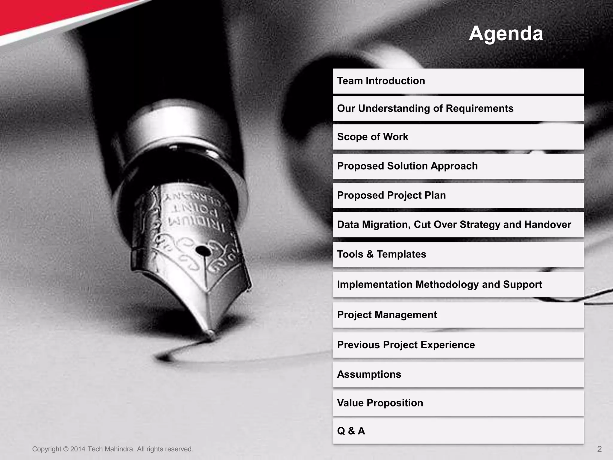 1) An introduction of the Tech Mahindra team leading the implementation.