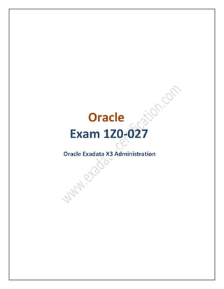 The document contains exam questions and answers related to Oracle Exadata administration, specifically for the 1z0-027 certification. It covers topics such as flash cache management, media-based backup recommendations, database migration methods, and system monitoring in a multi-rack environment. Additionally, it addresses procedures for orderly shutdown and proper cooling for database machines.