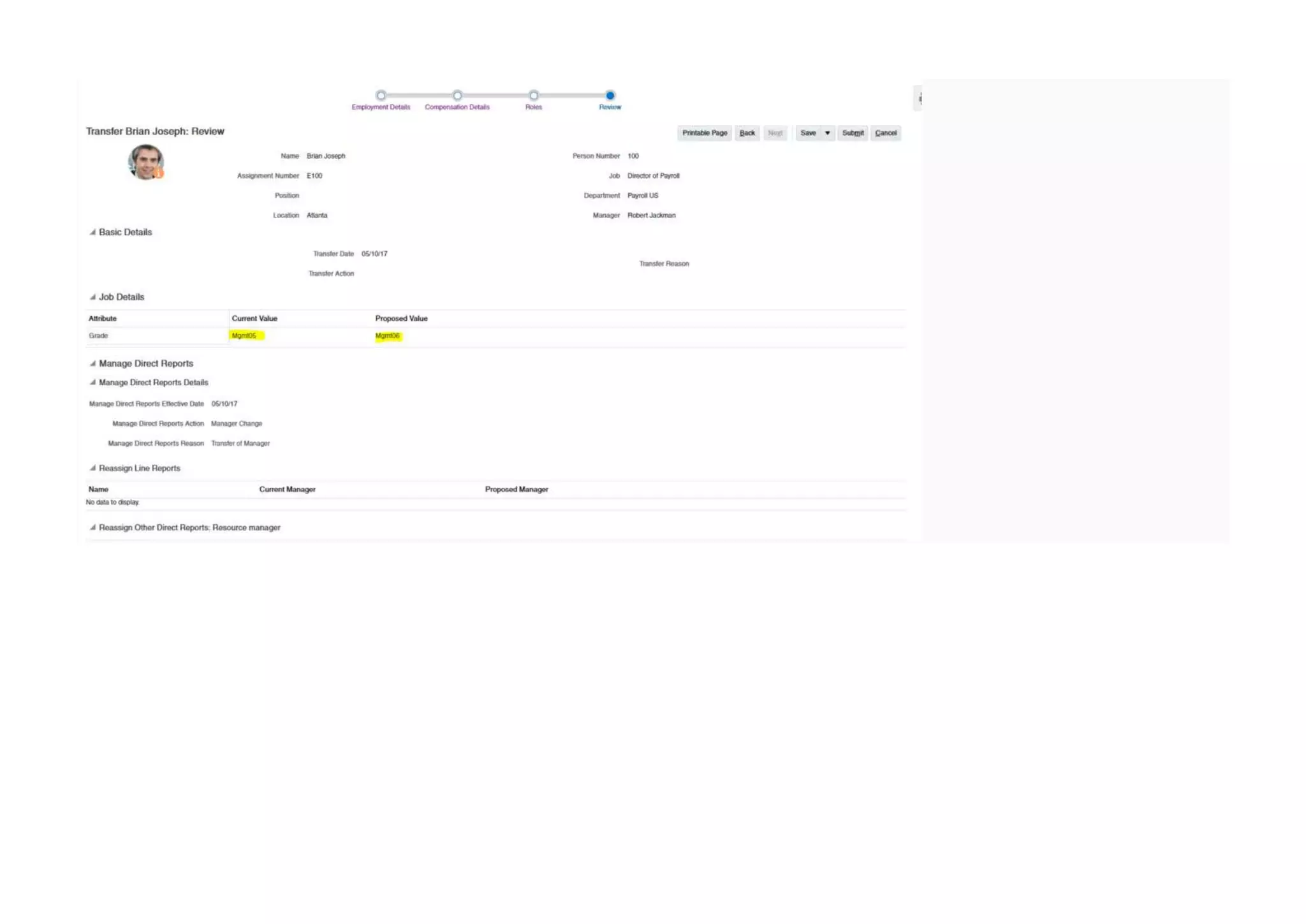 Oracle HCM Cloud uses human workflow automation to route approval tasks through a predefined sequence. It controls workflows for processes like hiring and promotions. Users can define simple or complex task routing policies. The system is integrated with HCM to determine approvers based on factors like supervision hierarchy, responsibilities, and job level. Workflows allow humans to interact with processes, such as approving purchases. They provide full task lifecycle management including rerouting, escalating, and setting deadlines. An example transfer workflow is configured to require approval from a user if the employee's current salary is over $9,000 and in the sales department. Workflows integrate with personnel records to update status.