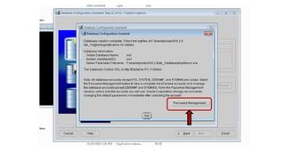 The document provides instructions for installing Oracle software including copying the software files to the computer drive, creating an administrator, configuring virtual memory settings, installing the software, creating a listener, and creating a database process. The instructions are prepared by Niloy Saha and Dipongker Sen of the Department of Computer Science & Engineering at Hamdard University Bangladesh.