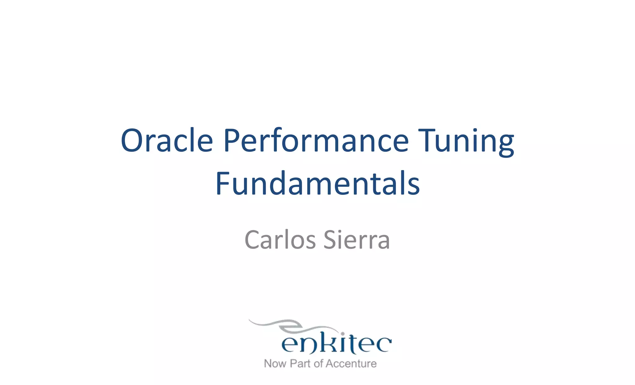 This document provides an overview of Oracle performance tuning fundamentals. It discusses key concepts like wait events, statistics, CPU utilization, and the importance of understanding the operating system, database, and business needs. It also introduces tools for monitoring performance like AWR, ASH, and dynamic views. The goal is to establish a foundational understanding of Oracle performance concepts and monitoring techniques.