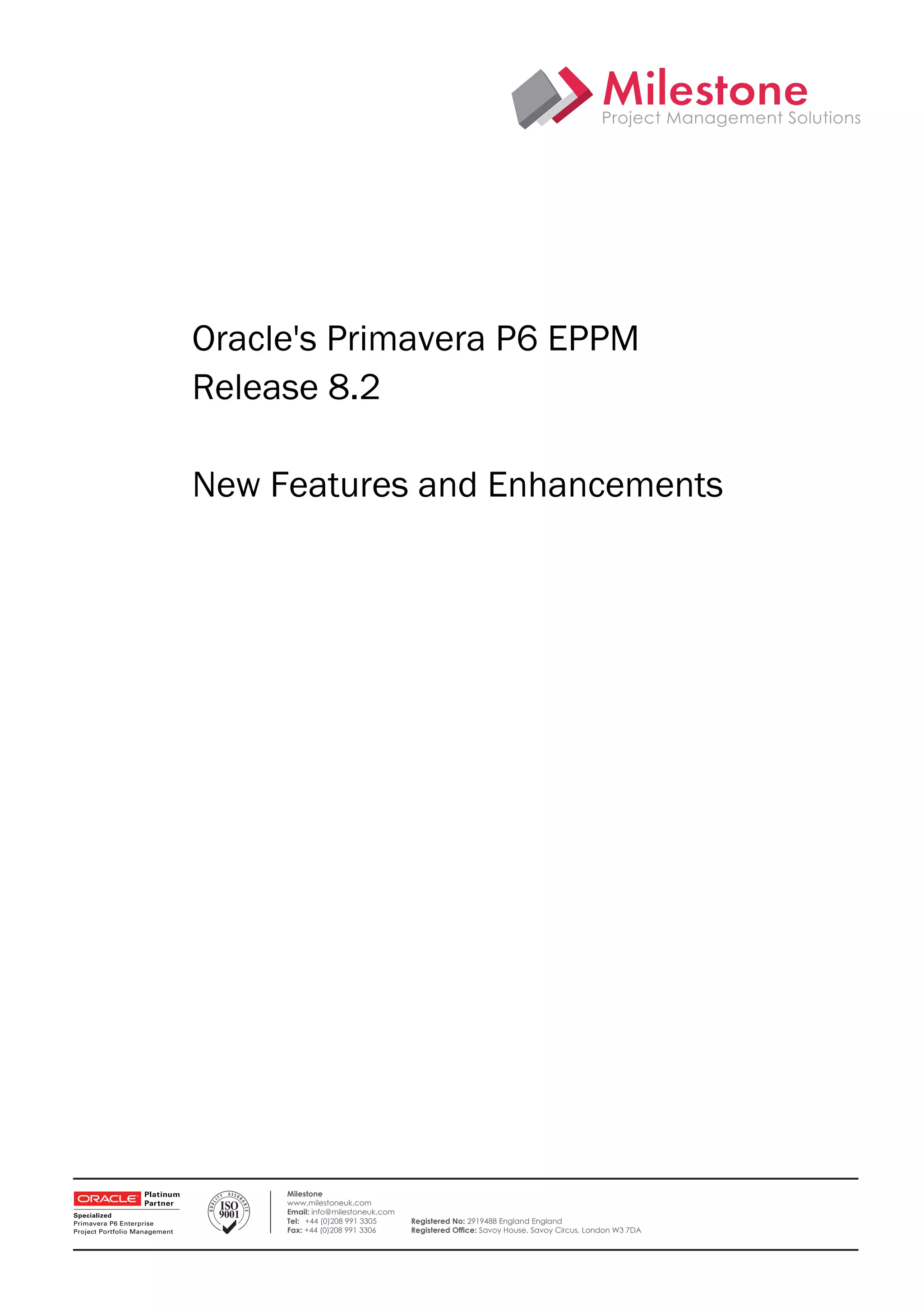 The document summarizes new features in Oracle's Primavera P6 EPPM Release 8.2, including: