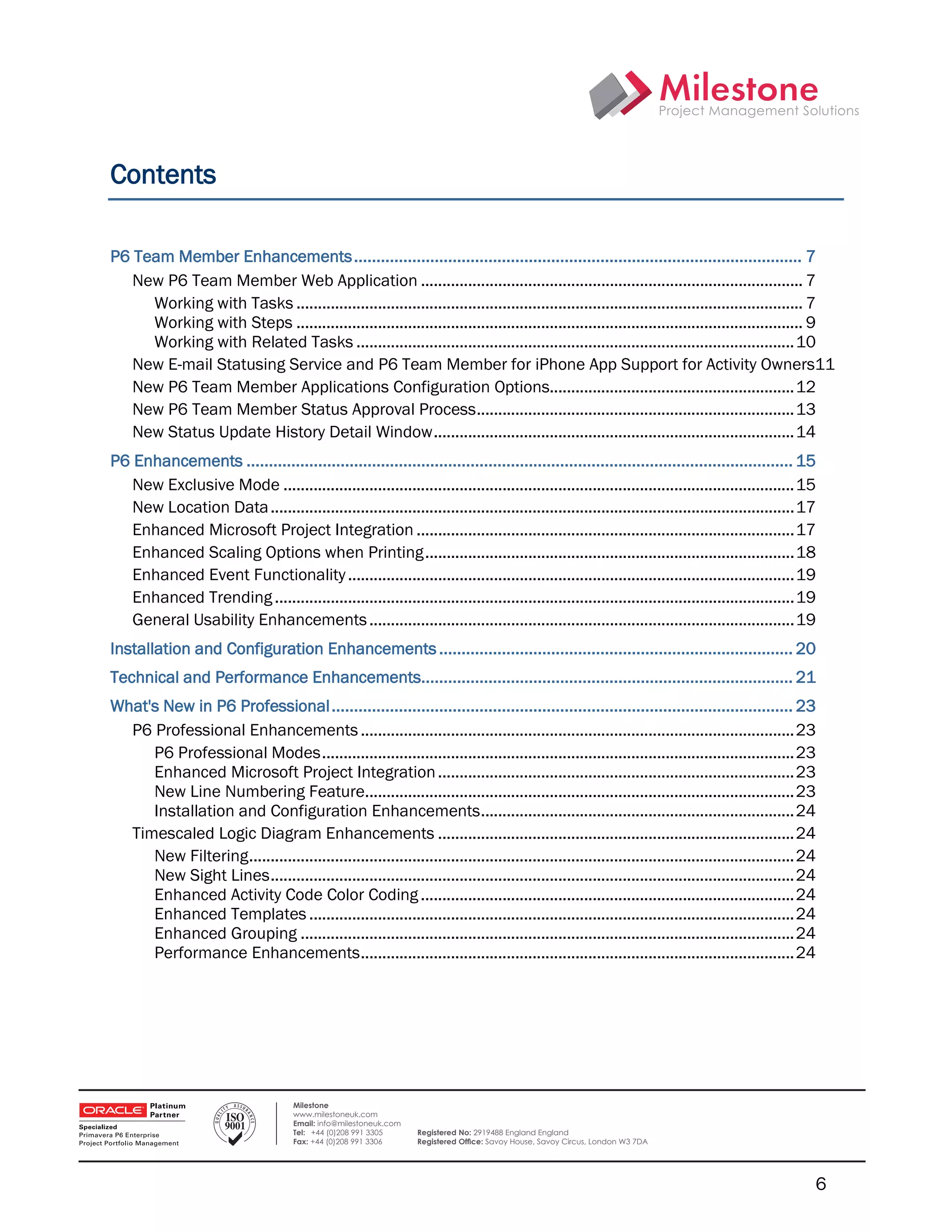 2) New configuration options and a status approval process for the P6 Team Member application.
