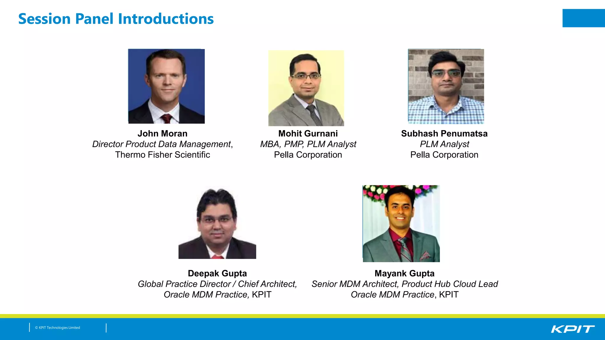 Thermo Fisher Scientific is looking to implement an enterprise product master solution to manage their large and growing product data in a centralized and scalable way. They were facing challenges with synchronization between their PLM and ERP systems and inconsistent product data models across business units. Oracle Product Hub Cloud was selected as it provides comprehensive product data management functionality including BOM and where-used capabilities needed to support their supply chain. It also enables supplier collaboration and integration with various Oracle and non-Oracle systems. The presentation discusses Thermo Fisher's vision and drivers for the solution as well as lessons learned from Pella Corporation's implementation.
