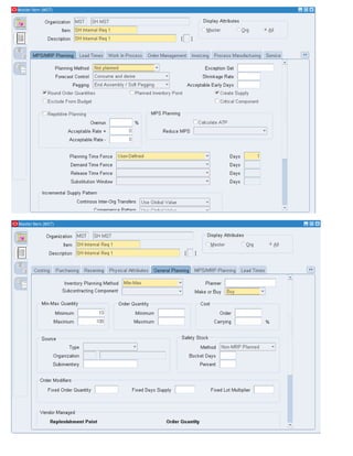Internal requisitions provide a mechanism for requesting inventory transfers between organizations. They allow tracking inventory as it moves between organizations and reducing costs. Key features include defining sourcing options, managing an inter-organization shipping network, and using the same process for internal and external requisitions.